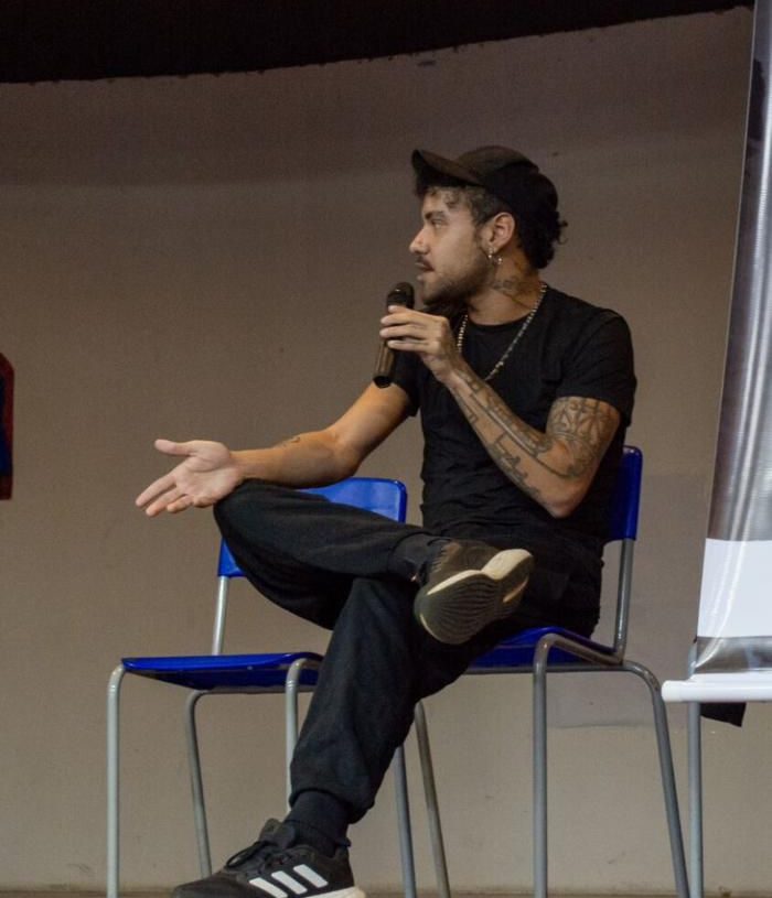 Na tarde desta terça-feira (21), o artista e designer Victor Hugo Soulivier conduziu uma roda de conversa no Centro de Ensino Médio Ave Branca (CEMAB), em Taguatinga, com o tema “Desenhando Sonhos & Vestindo o Futuro”. O encontro reuniu mais de cem estudantes do ensino médio e foi transmitido ao vivo, ampliando o alcance da atividade para além da escola.